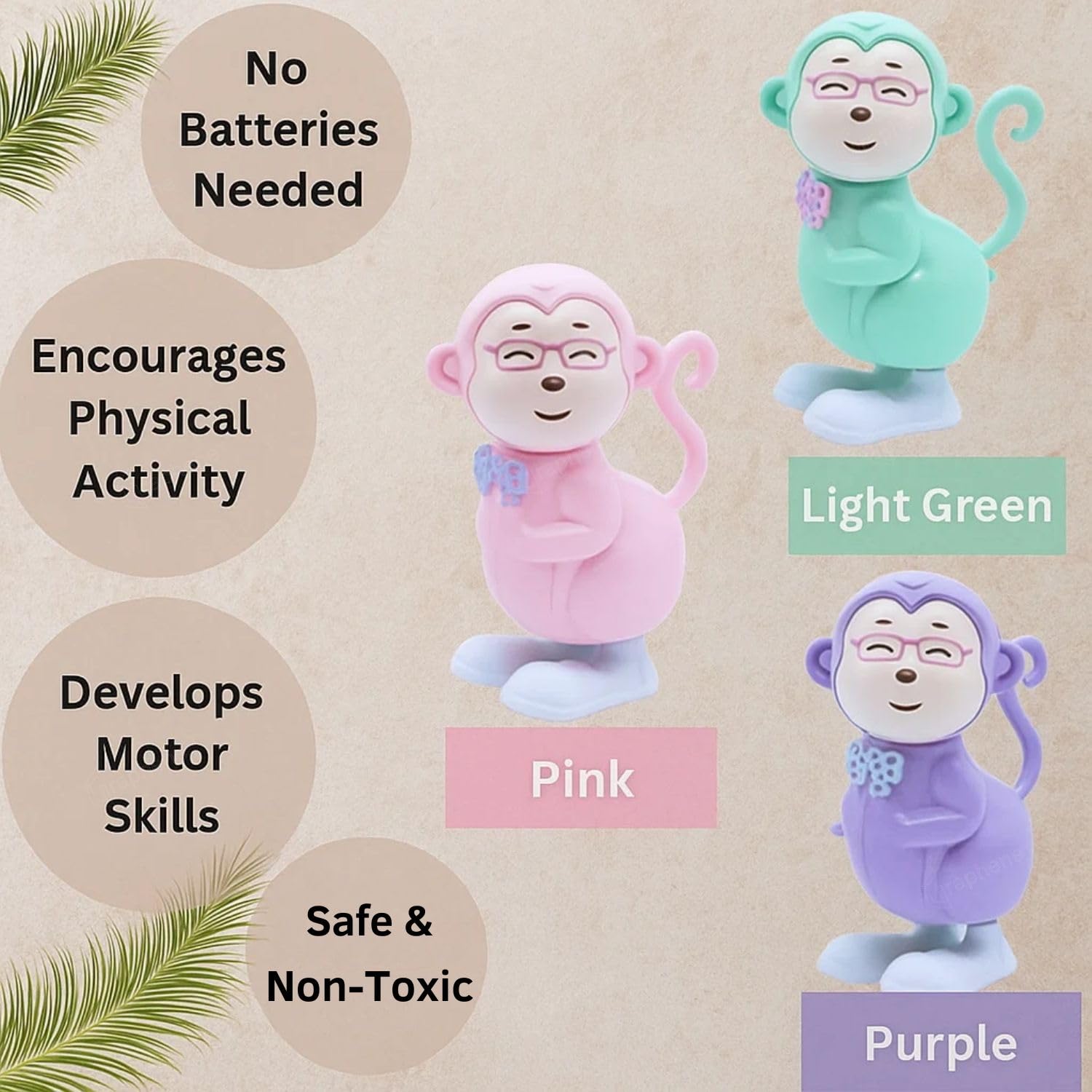 Wind-Up Monkey Toy with Key Jumping & Rotating Head Clockwork Animal Toy for Kids Toddlers Boys & Girls Key Operated Monkey Battery Free