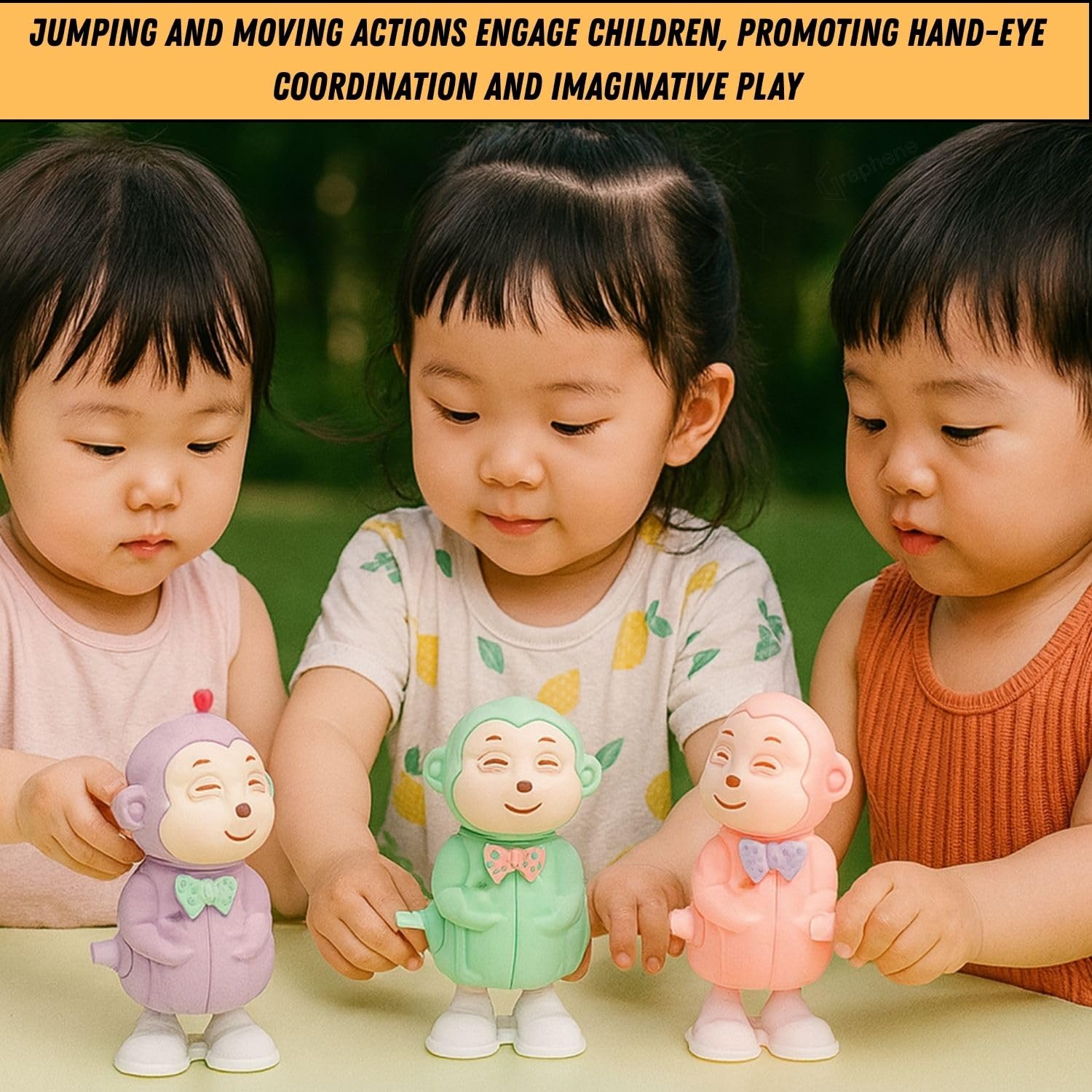 🐒HOW IT WORKS- The kid has to turn the key clockwise for few times and place it on the floor to see the toy jumping. Rotate the key given on the side of the toys clock wise & put it on the ground they will jump & kids love to follow them around.